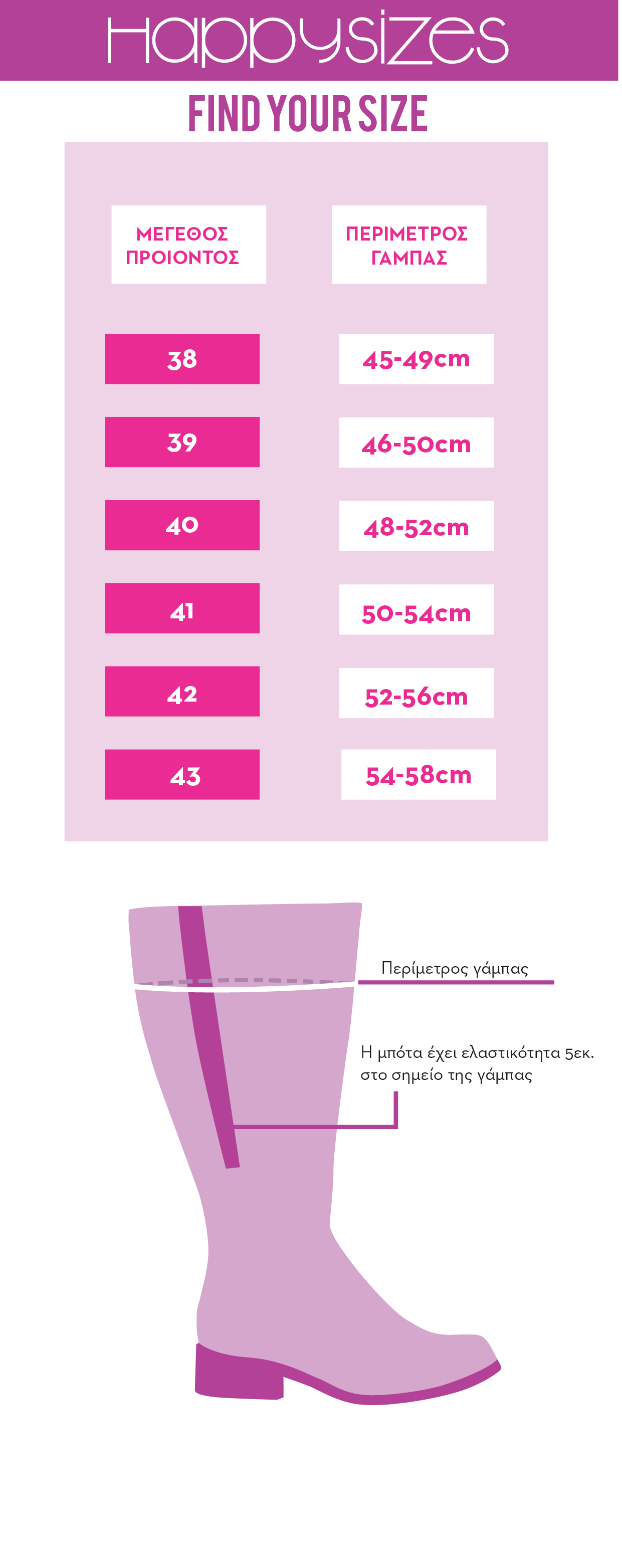 Διαθέτει φαρδιά γάμπα που μπορεί να μεγαλώσει έως 5cm λόγω του λάστιχου στο πλάι.